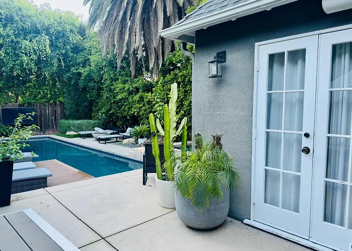 Das Hotel Delux Private Rooms At The Villa With Pool Los Angeles liegt ungefähr 16 Fußminuten vom Einkaufszentrum The Grove entfernt und bietet Annehmlichkeiten wie einen Salzwasser-Pool und Spa-Therapie.